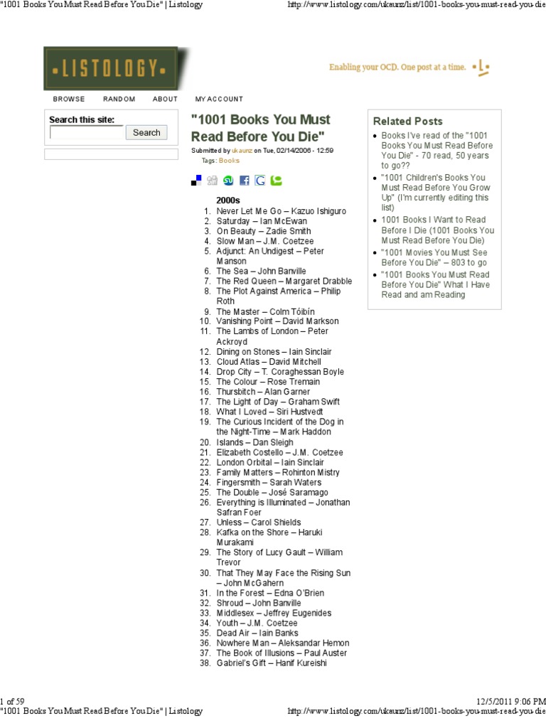 Book Lists 1001 Books You Must Read Before You Die Youtube