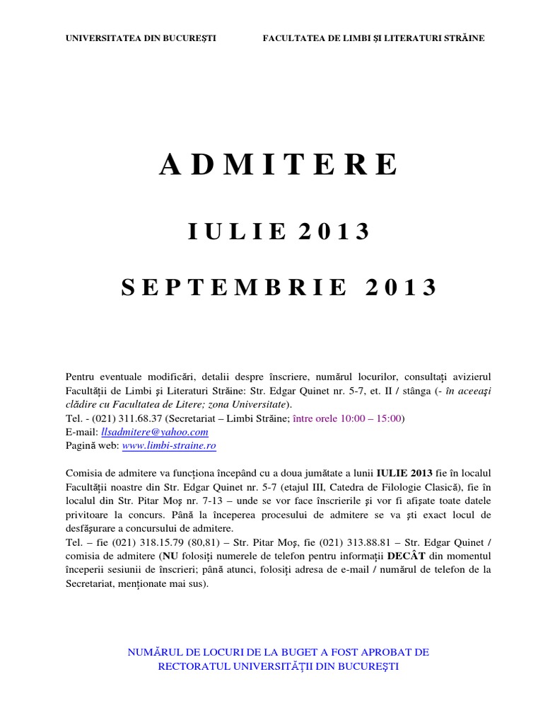 Admitere Limbi Străine 2015 Admitere Facultatea De Limbi Străine B365