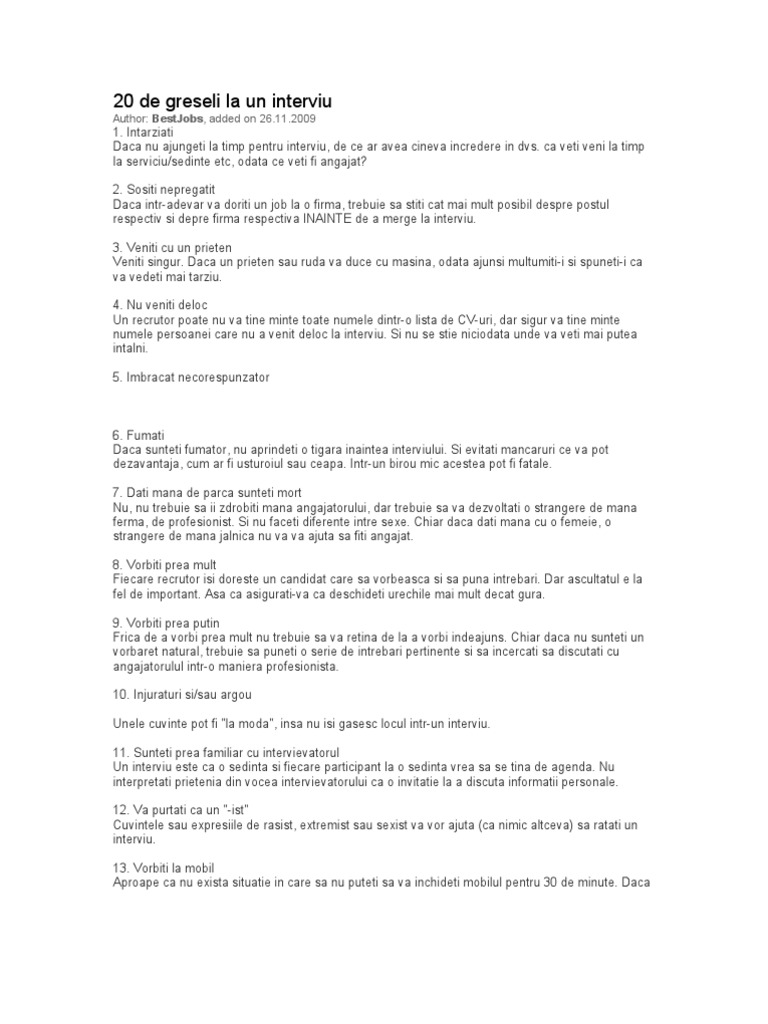 Ce Să Nu Spui La Un Interviu De Angajare Cultură Turism Unimedia