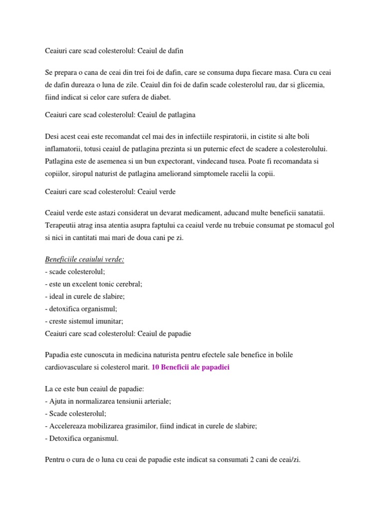 Ceaiuri Care Scad Colesterolul Ecuisine