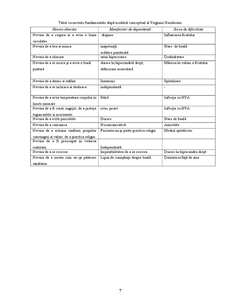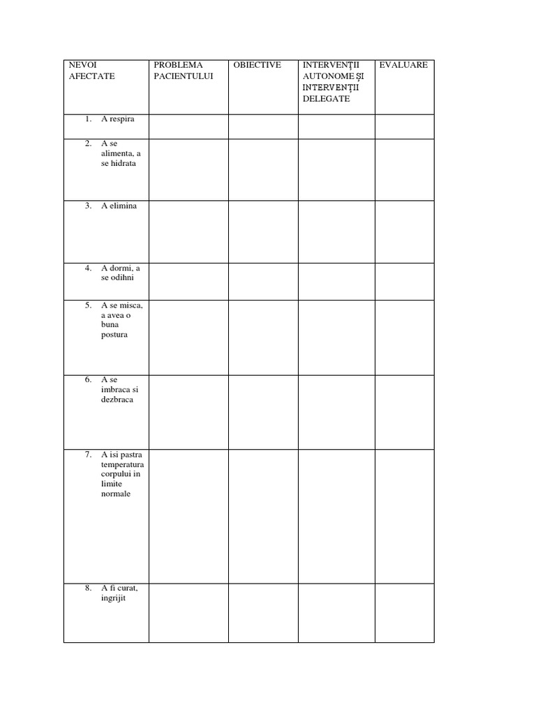 Tabel Cu Nevoile Fundamentale După Modelul Conceptual Al Virginiei Henderson