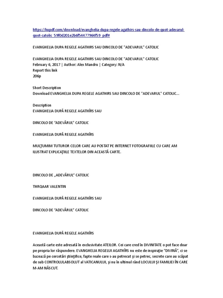 Evanghelia Dupa Regele Agathirs Sau Dincolo De Adevarul Catolic Rtf