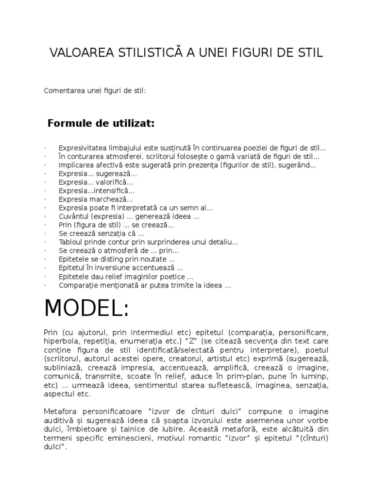 Comentarea Unei Figuri De Stil