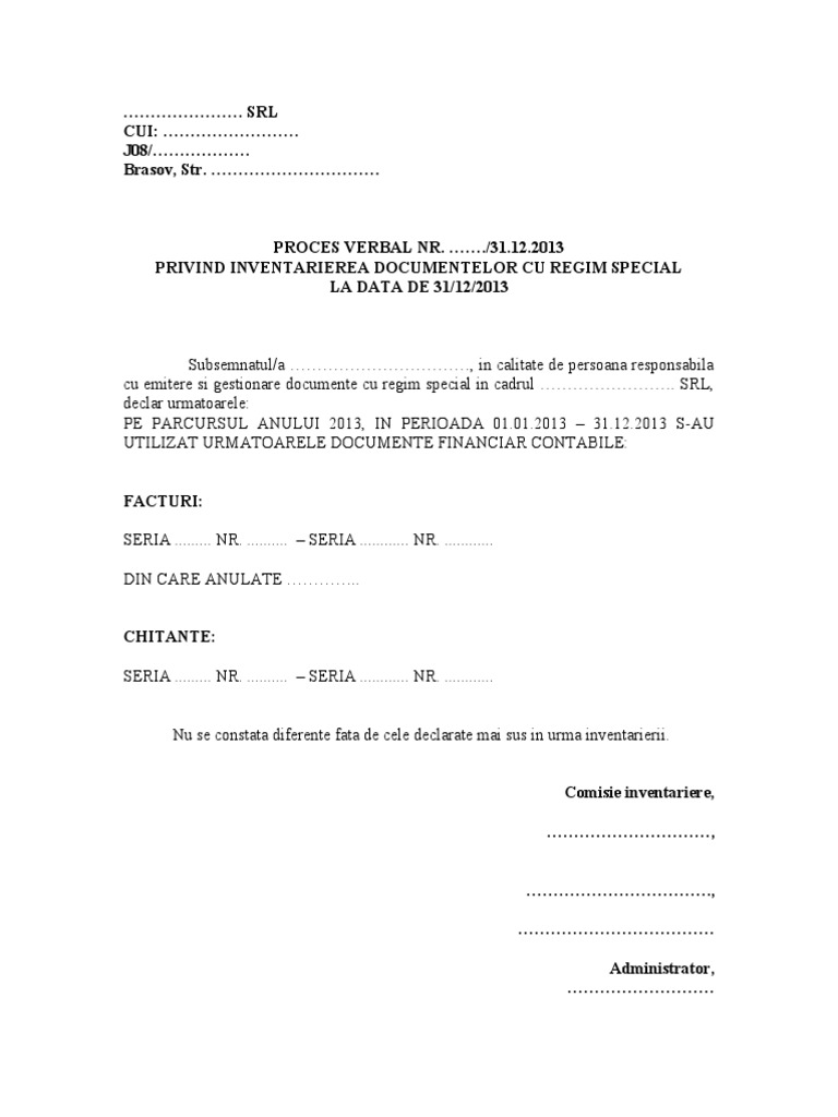 Model Proces Verbal Formulare Cu Regim Special