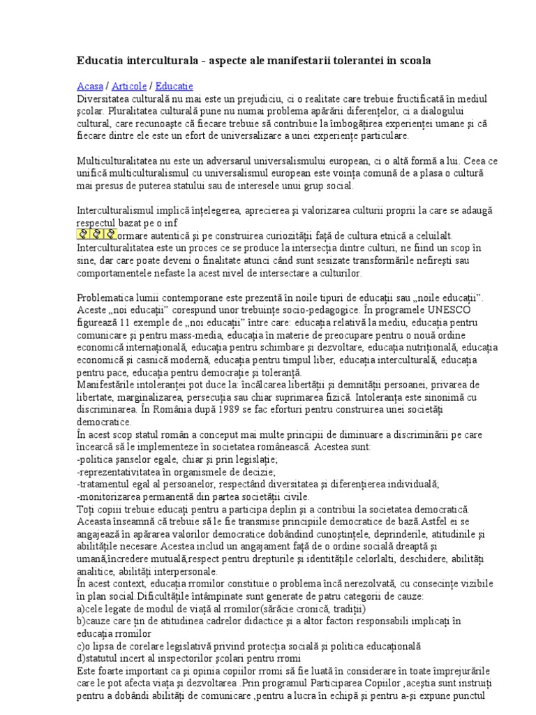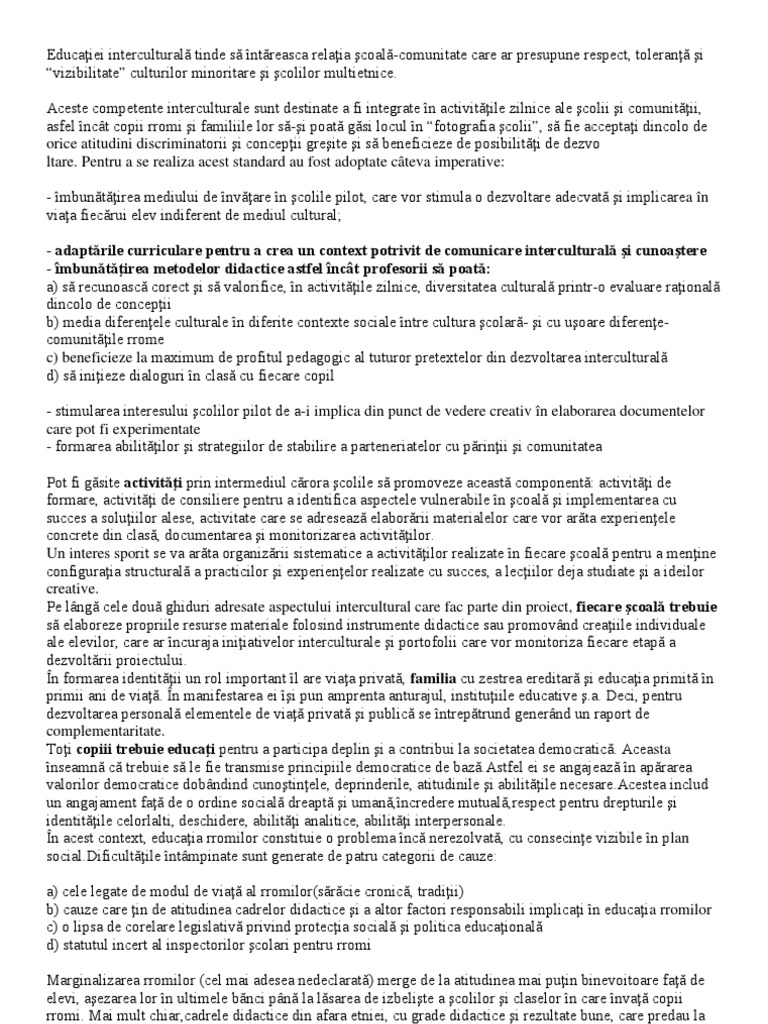Proiect Educatia Interculturala In Scoala Romaneasca Pedagogie 229270