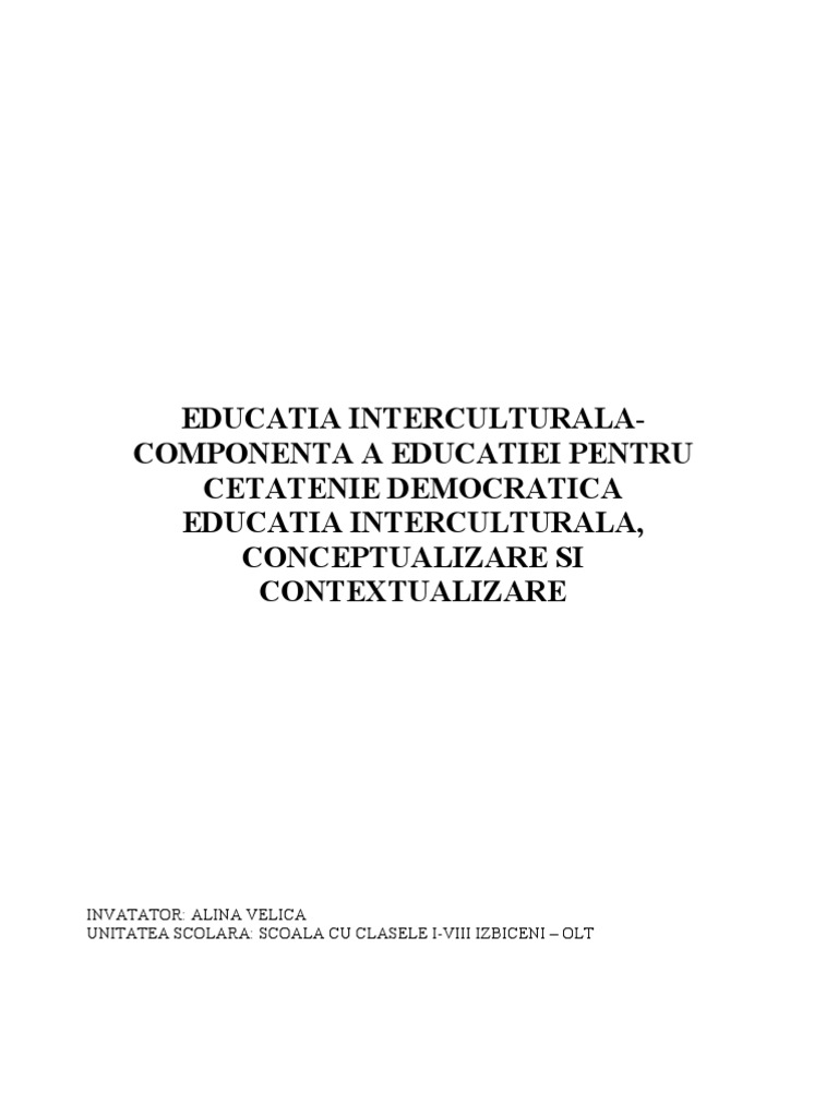 Educatia Intercultural A Conceptualizare Si Contextualizare