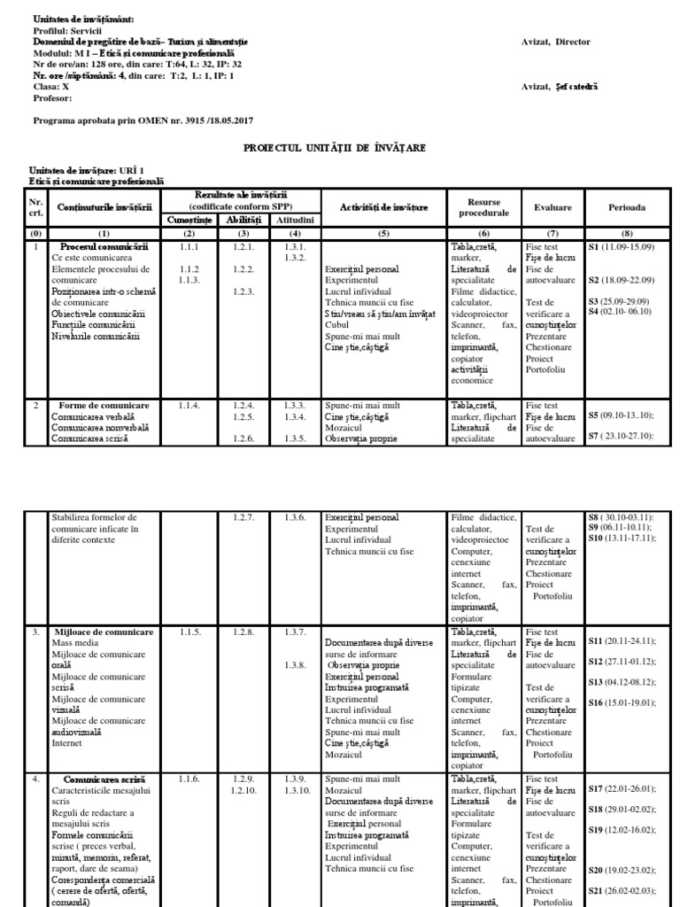 Planificare Calendaristica A X A C Etica Si Cominicare Profesionala Virdol Delia Bianca