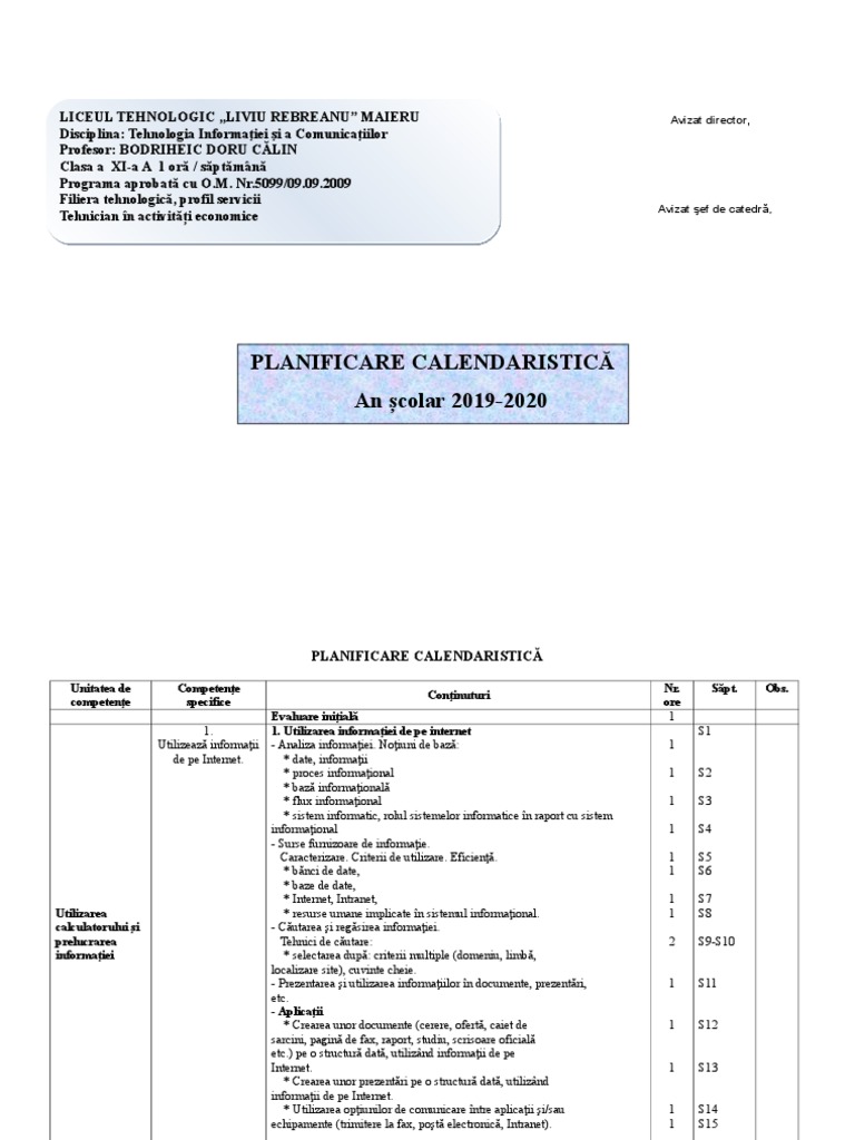 Planificare Tic Xi 2019 2020