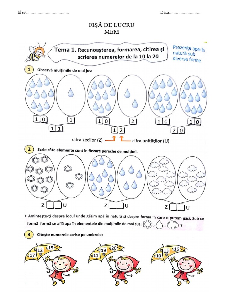 Materiale Didactice De 10 Zece Numerele Naturale Din Concentrul 0 10 Fișă De Lucru M E M Clasa Pregătitoare Words Preschool Education