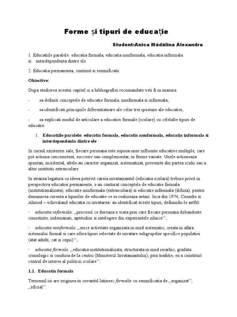 Doc Formele Educatiei Si Relatiile Dintre Ele Lysto Andrei Academia Edu