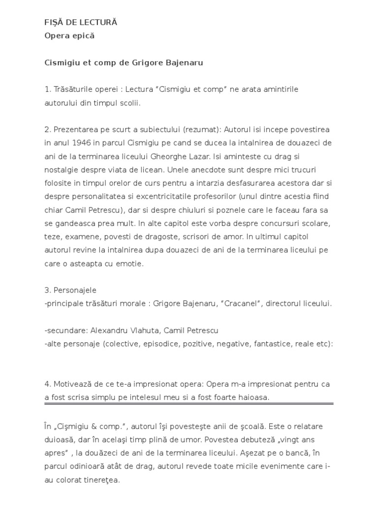 Rezumat Cișmigiu Et Comp De Grigore Băjenaru Rezumate Cărți Citeste Cărți Online Pdf Caracterizări Referate Si Comentarii Cărți