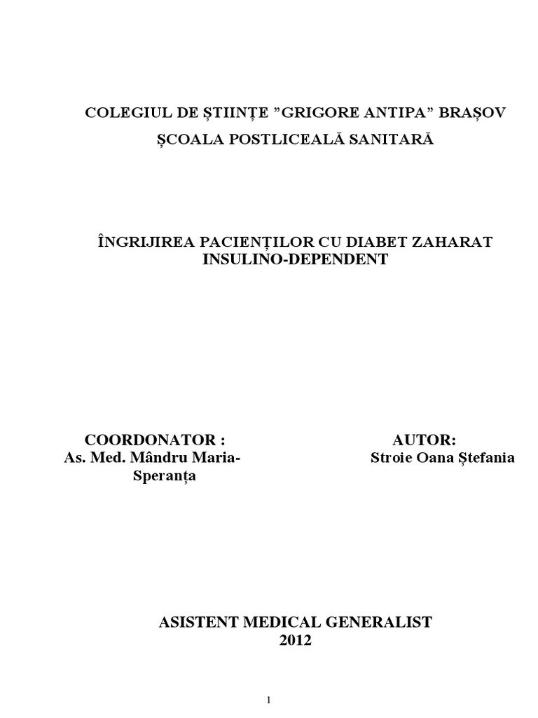 Lucrare De Licenta Amg Ingrijirea Pacientului Cu Diabet Zaharat De Tip 1 Okazii Ro