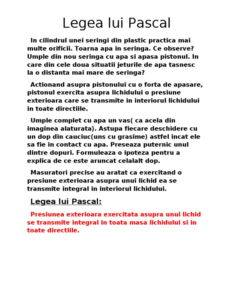 Legea Lui Pascal Referat Clasa A 8