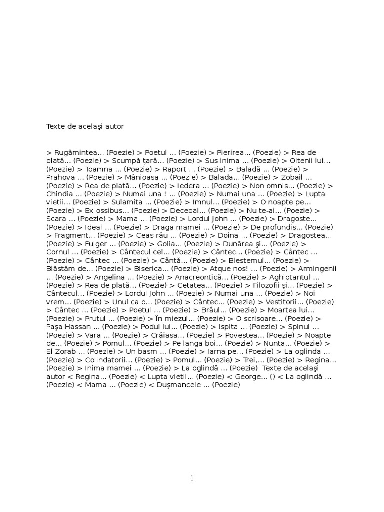 Prin colţuri de odaie. In vaduri ape repezi curg si vuiet dau in cale iar plopi in umedul amurg doinesc eterna jale. 1873 isi continua scoala primara clasele a ii a si a iii a la telciu. Un basm cu pajuri şi cu zmei începe acum o fată tu taci ş asculţi povestea ei şi stai îngândurată.