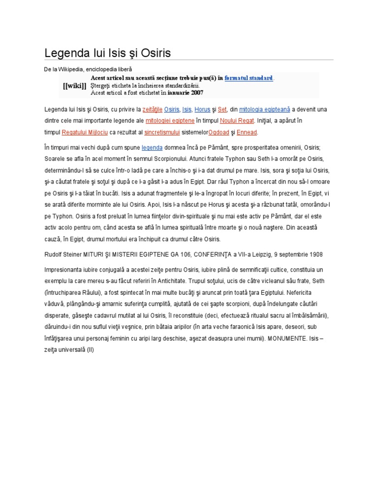 Mitul Lui Isis Si Osiris In Baltagul