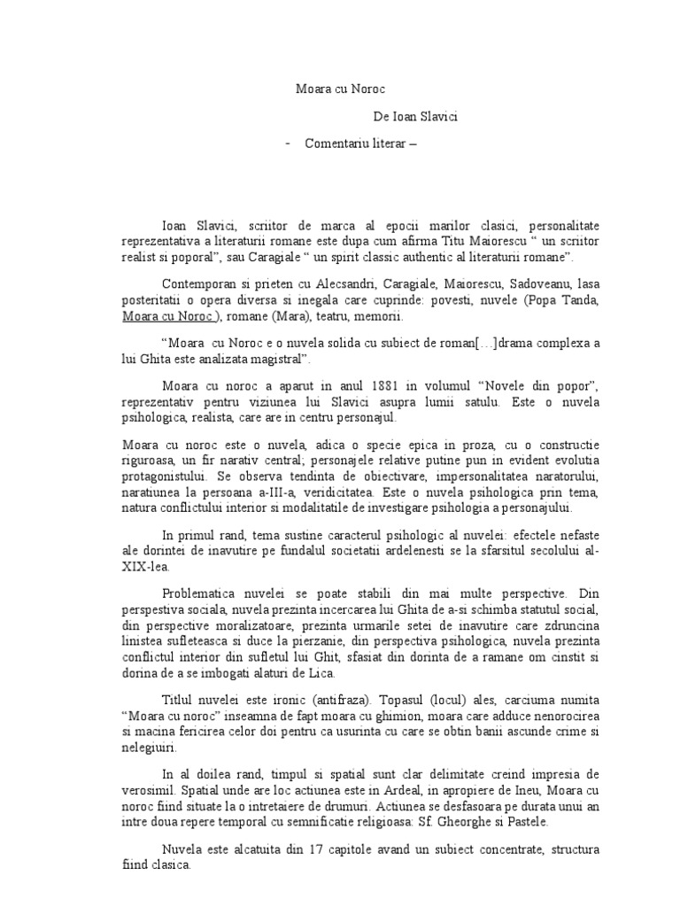 Comentariu Moara Cu Noroc De Ioan Slavici 277634 Graduo