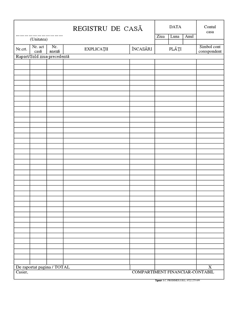 Registrul De Casa Contabilitate Fiscalitate Monografii Contabile