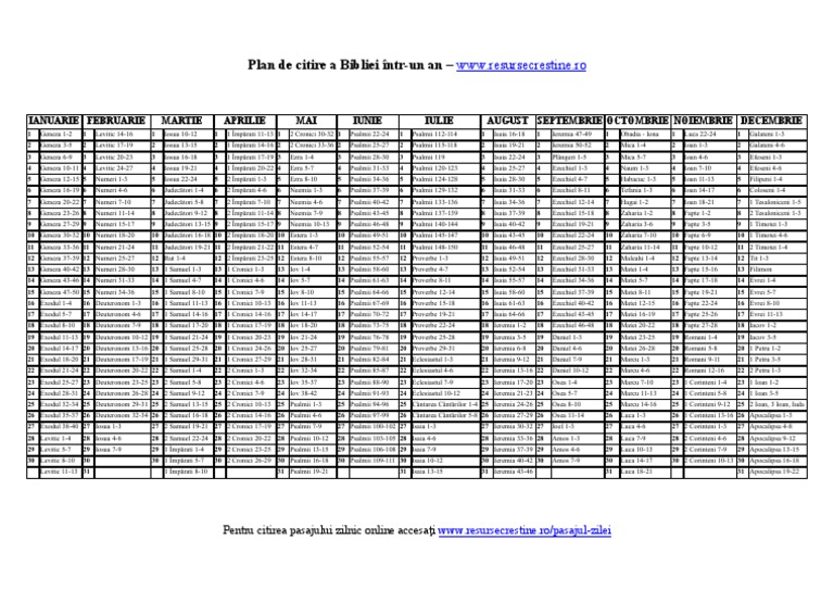 Citirea Bibliei Intr Un An A4 Www Resursecrestine Ro
