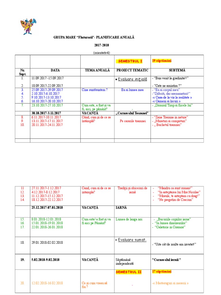 Planificare Anuală 2017 2018 Grupa Planificare Anuală 2017 2018 Grupa Mijlocie Tema Anuală De Studiu Proiect Tematic Subtema Proiect Tematic Temă In Afara Proiectului Perioada