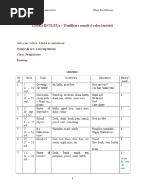 Free Clasa Pregătitoare Model De Planificare Anuală Detaliată