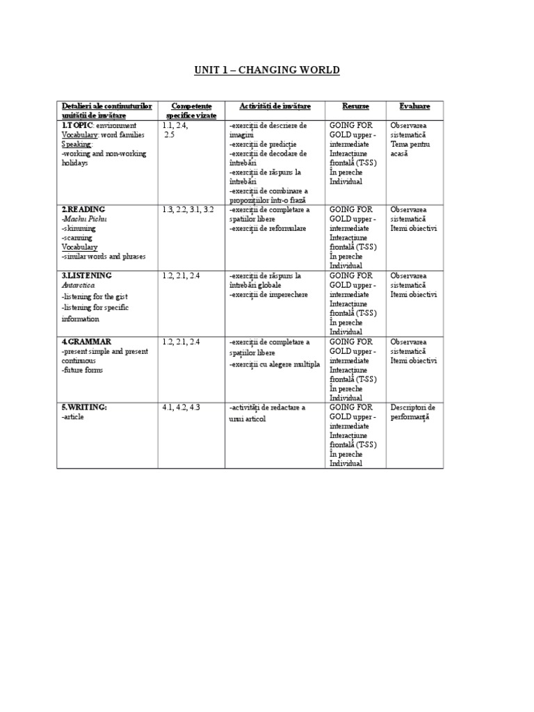 Planificare Pe Unitati De Invatare Clasa Pregatitoare