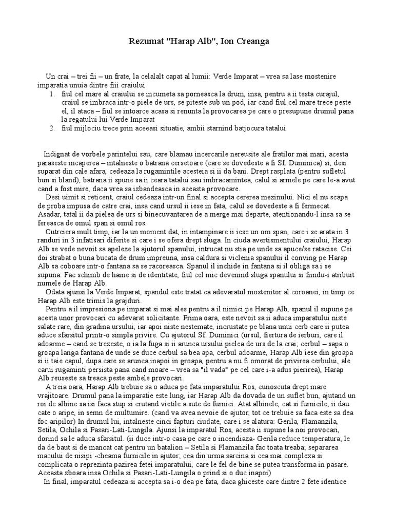 Povestea Lui Harap Alb De Ion Creangă Rezumat Mihai Dorian Academia Edu