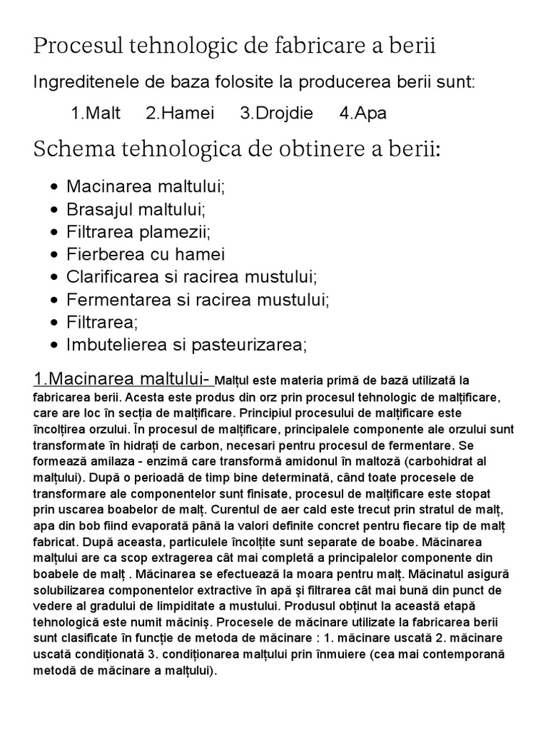 Tehnologia Obtinerii Berii Din Malt Diploma Ro