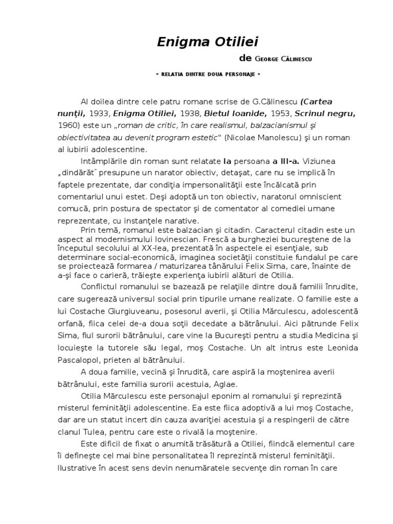 Doc Enigma Otiliei Calinescu Andreea M Academia Edu