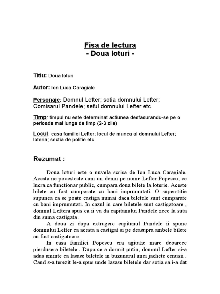 Poate Cineva Cu Un Rezumat Scurt Detaliat Al Doua Loturi De Ion Luca Caragiale Brainly Ro