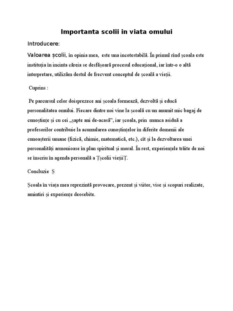 Importanta Scolii In Viata Omului