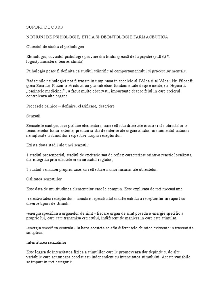 Suport Curs Notiuni De Psihologie Deontologie Si Etica Farmaceutica