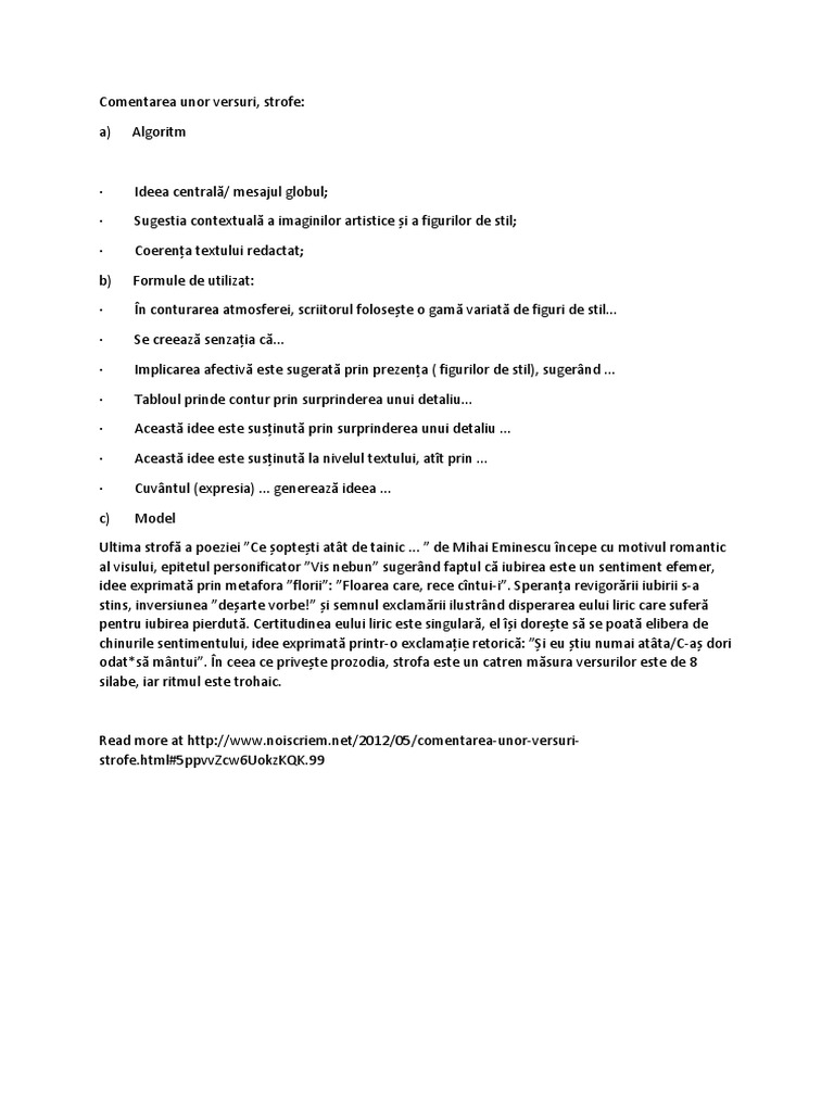 Comentarea Unei Strofe