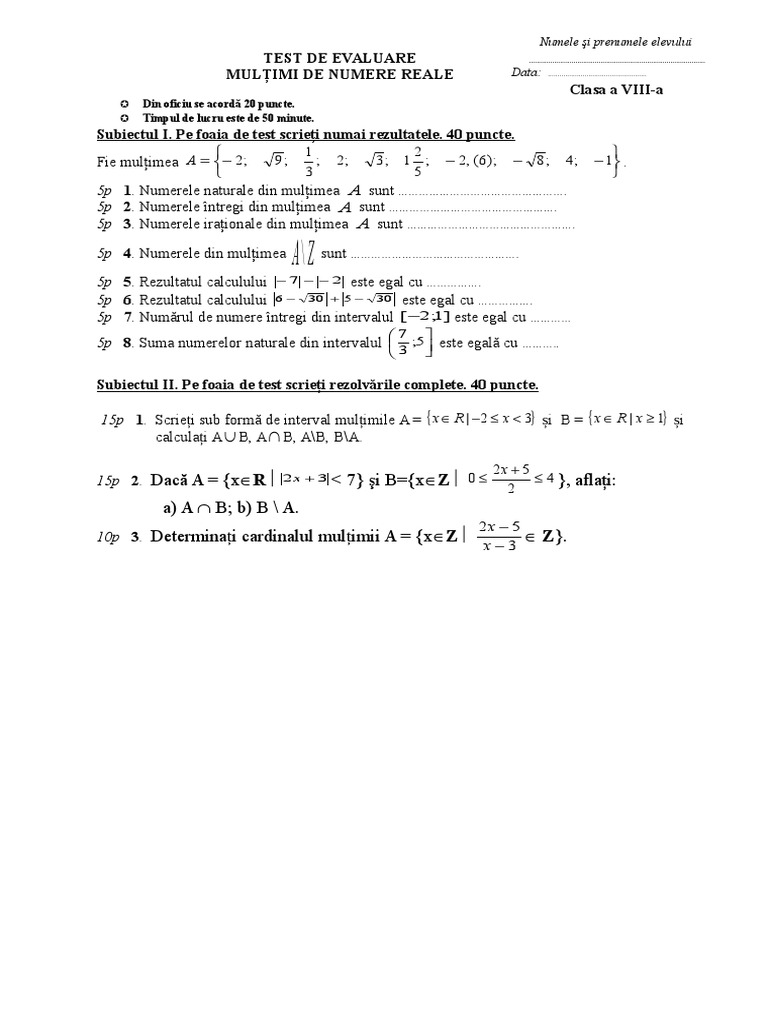 Clasa A Vii A Test De Evaluare Numere Reale Radicali Model 1 Partea A Iii A Youtube