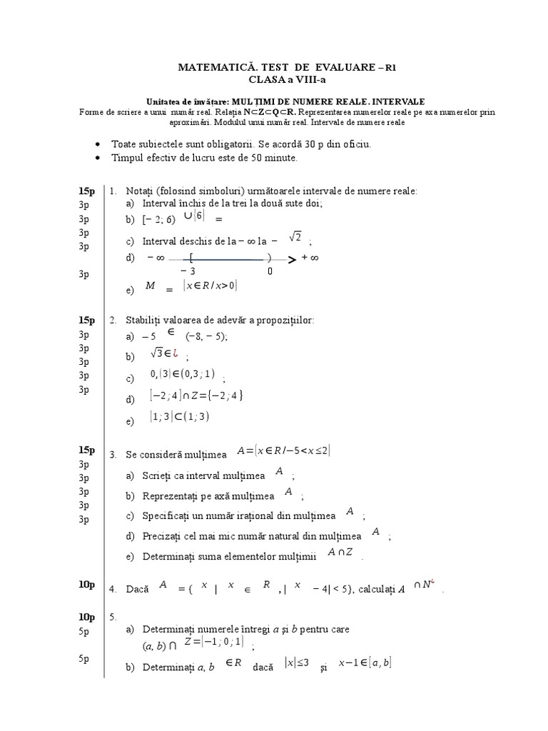 Clasa A Vii A Test De Evaluare Numere Reale Radicali Model 1 Partea I Youtube