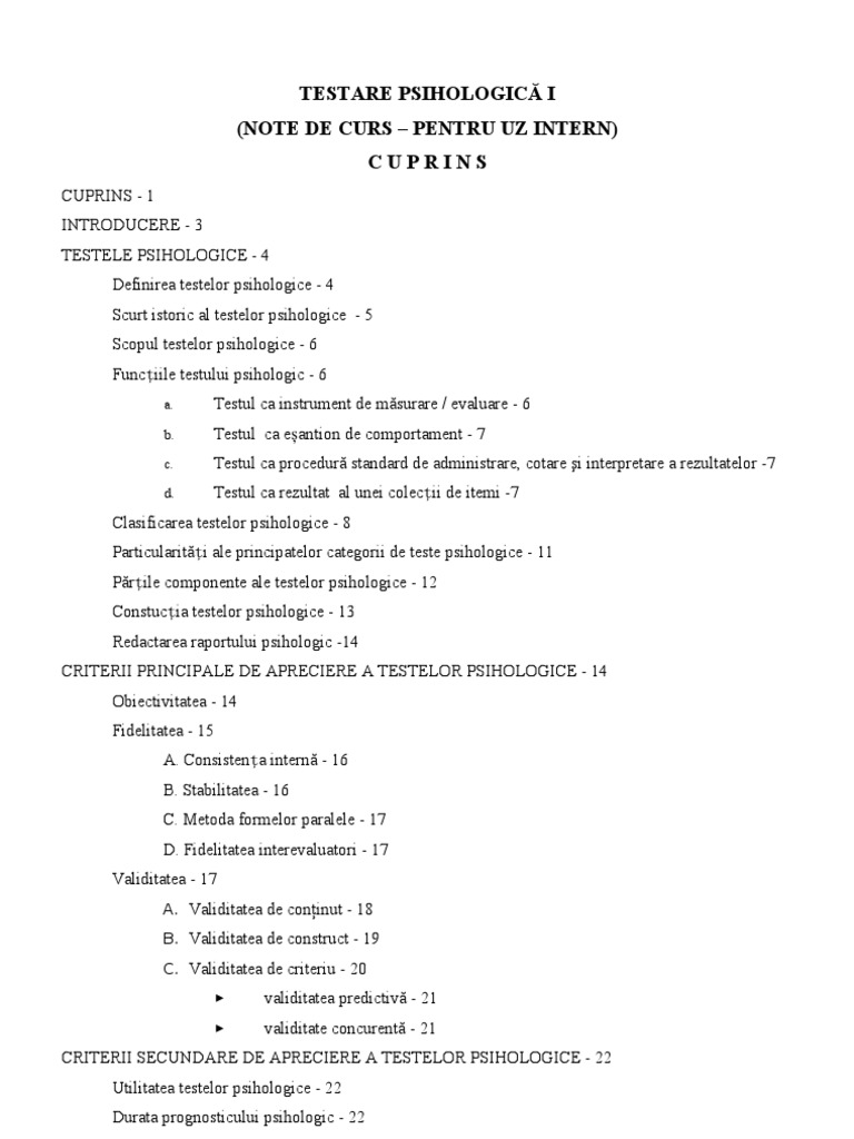 26632410 Testare Psih I Note De Curs Daniela Nicoara