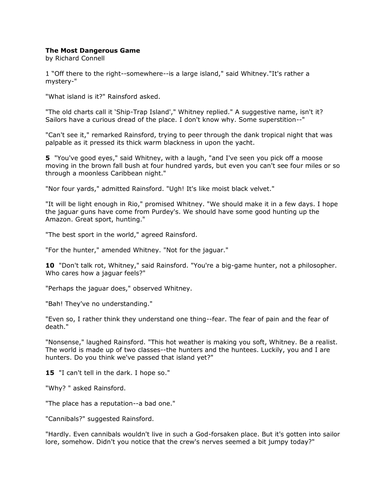 The Most Dangerous Game By Richard Connell Complete Guided Reading Worksheet
