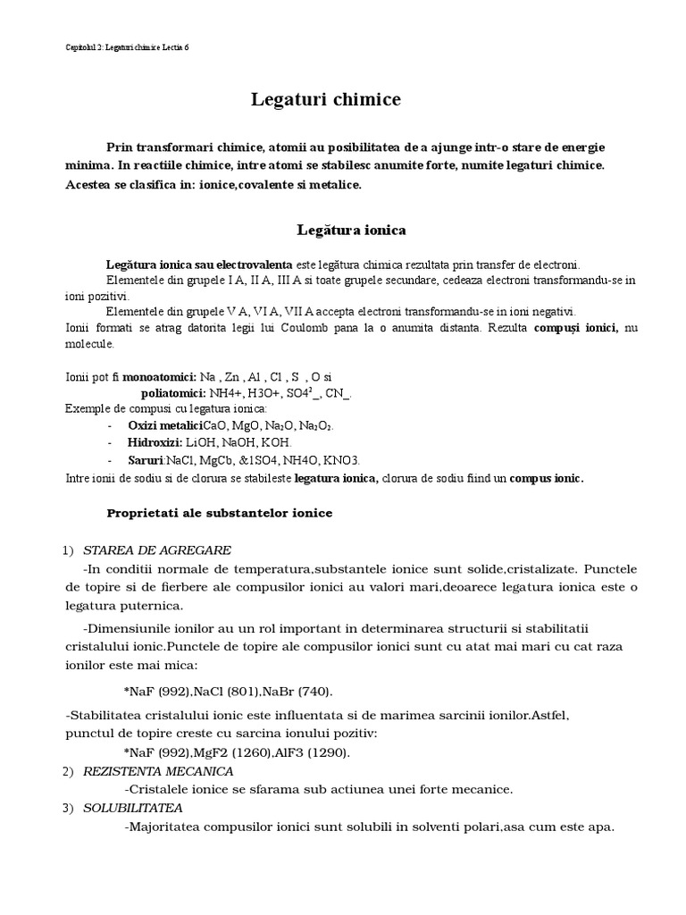 Tipuri De Legaturi Chimice Exemple