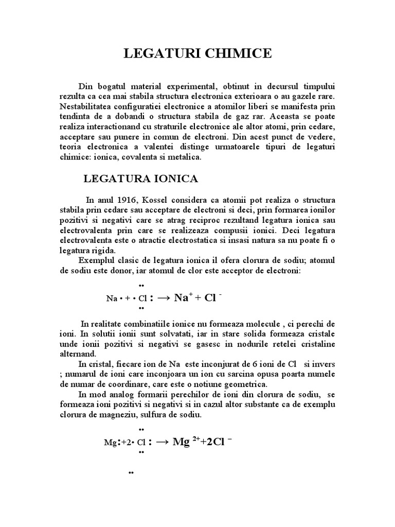 Referat Legaturi Chimice In Mecanica Cuantica Chimie Generala 4464