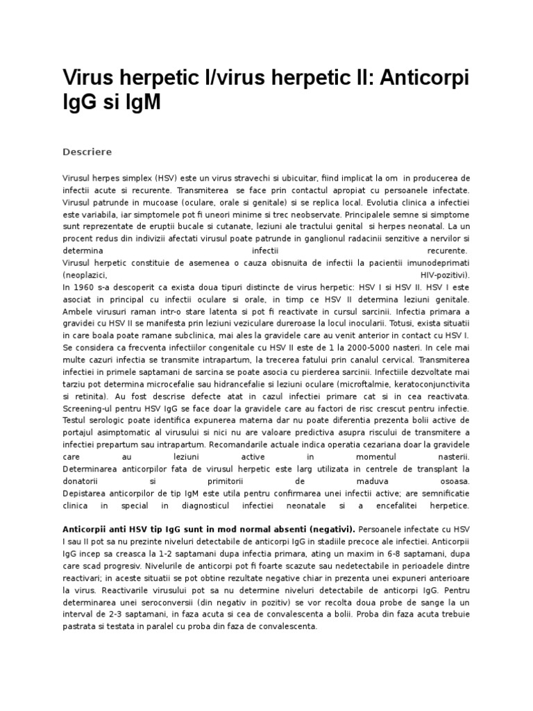 Virus Herpetic 1 Si 2 Anticorpi Igg Pozitiv Sarcina
