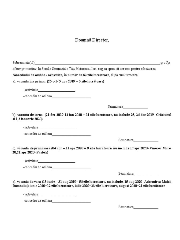 Cerere Concediu 2019 2020